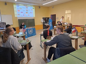 Am 6.11. hat der Politikkurs der QP2 pw618 im Rahmen des Semesterthemas "Friedens- und Sicherheitspolitik, Prozesse auf globaler Ebene" im Konfliktplanspiel, das Jugendoffizier Fabian Gruhn  gestaltete, simuliert.
