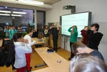 Das obere Foto zeigt englische Schüler, die ein Sprachspiel mit der Klasse 6bs durchführten. Text: Fr, Foto: englisches Comenius-Team 2012