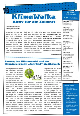 Vom 26.-30.10.2020 fand die 13. Klima-Aktionswoche am Ratsgymnasium statt. Das Motto 2020 lautete "Aktiv für die Zukunft": KlimaWolke2020.