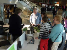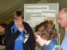 Ratsgymnasium als Ausstellungspartner im phӕno Roboter-Festival am 17./18.3.12 Das Ratsgymnasium unterstützte mit der DynaMINT-Gruppe unter Leitung von Herrn Gärtner die Sonderausstellung des phaeno zum Thema Robotik am Wochenende. Unsere Computerexperten präsentierten dem interessierten Publikum sehr souverän ihre neuesten Ideen. Witzig war die Idee des Hundebadens. Der Roboter testete zunächst die Temperatur des Badewassers. War die Temperatur richtig, wurde "Waldi" vom Roboter ins Badewasser abgesenkt. Für Autofahrer von Interesse war der Roboter, der die Größe einer Parklücke ausmaß und dann das Auto elegant einparkte. Und für Aufräum-Muffel gab es einen Aufräum-Roboter, der am Ende des Tages echte Ermüdungserscheinungen zeigte.. Ganz schön menschlich? Vielleicht auch nur ein leerer Akku! Nicht müde waren allerdings unsere Schlerinnen und Schüler, die das